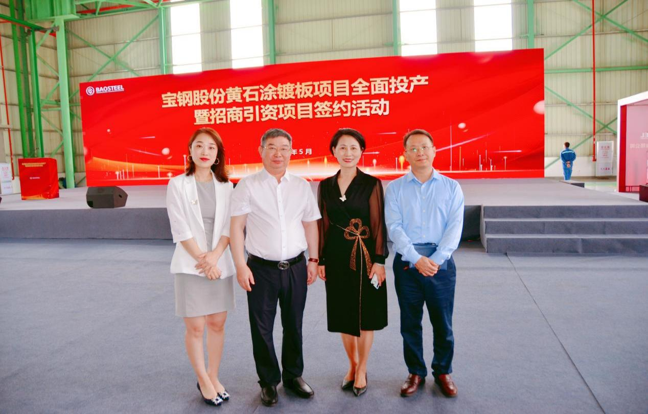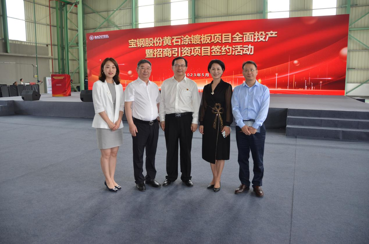 董事長(zhǎng)劉國(guó)民和寶鋼股份黃石涂鍍板有限公司總經(jīng)理助理兼制造部部長(zhǎng)劉浩洲(左三)